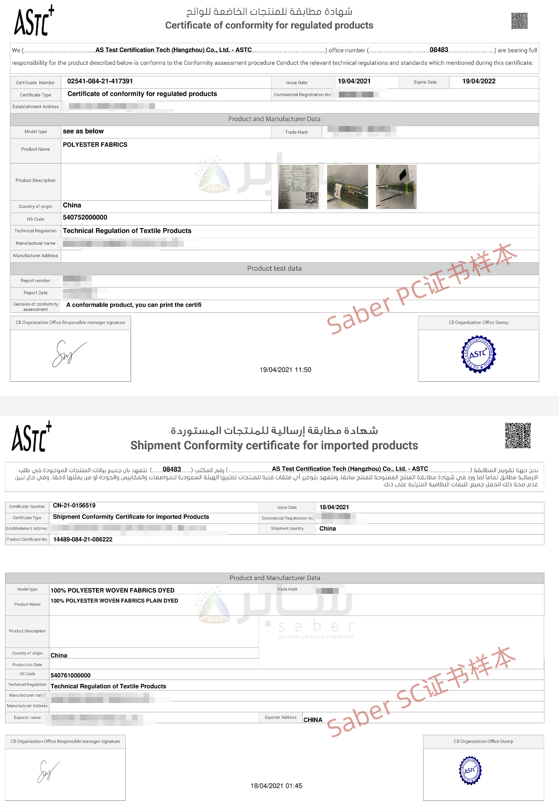 ASTC+ is one third-party certification body accredited by GSO, SASO and GOEIC. We can not only issue certificates including G-Mark certificate(both for toys and LVEs), SABER PCoC and SCoC for saudi customs clearance, but also can issue COI for Egypt customs clearance.