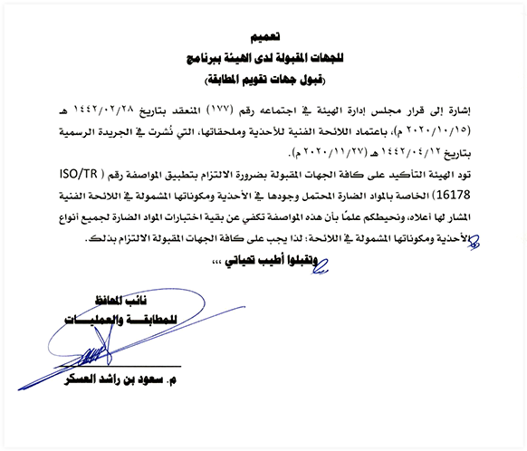 According to the Saudi authorities meeting results, all shoes products and its accessories must satisfy the requirement of ISO/TR 16178. This standards establishes a list of critical chemical substances potentially present in footwear and footwear components, and describes the critical chemical substances, their potential risks, the materials in which they can be found and the test method which can be used to quantify them.